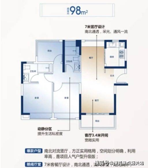 住宅户型建面71-125平方米,设计涵盖二至四房配置,主要户型特点为南北通透、双阳台配置及合理动线布局。户型内部空间利用率高,客厅、餐厅、厨房及卧室功能分区清晰,保证生活舒适性和私密性,同时适应家庭多样化生活需求。